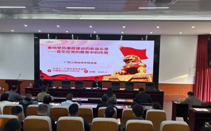 3月19日,广西工商技师学院举办了一场别开生面的党风廉政建设讲座。讲座由学院党委书记、院长杨静锦主持,全体教职工及学生干部代表共同参与。