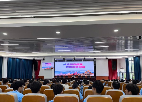 杨静锦书记勉励全体学生:以德立身,以技立业,争做德技双馨的能工巧匠;打牢技能基础,养成良好职业习惯;主动融入产业实践,在真实项目中锤炼本领;勇于创新创造,在平凡岗位上创造不平凡的业绩。