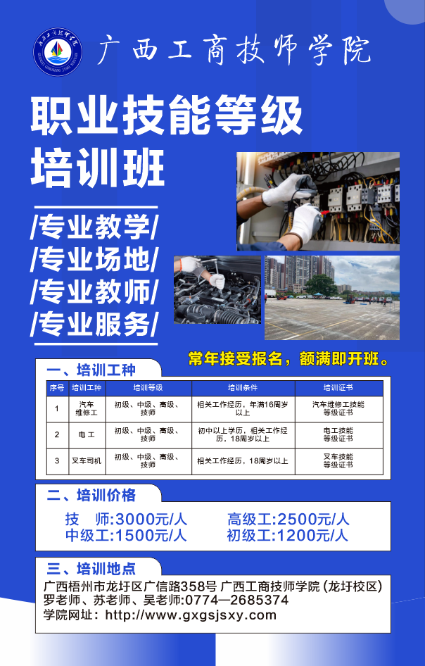 广西工商技师学院技能等级培训班常年招生