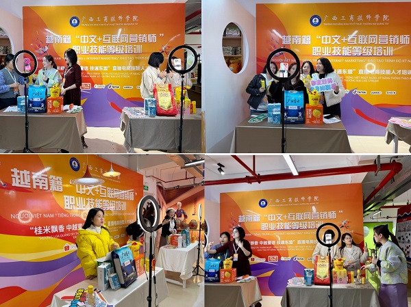 本次职业技能等级认定由广西商贸技师学院组织实施,特邀广西工商职业技术学院教授蔡欢欢、广西商贸技师学院高级讲师龚慧娟等组成高级考评团,覆盖互联网营销师一至四级鉴定。包括14名越南籍学员在内的23名中外学员参与认证,标志着中国职业技能标准在东盟国家的进一步推广与落地,为“一带一路”技能合作提供了坚实支撑。