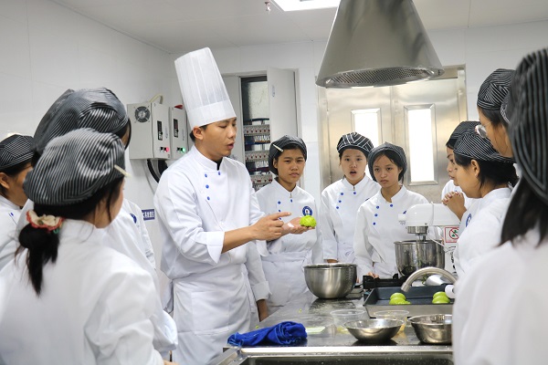 与此同时,我们以文化为脉,让技能生长有根可循:烹饪专业开设“非遗技艺创新”特色课程,将传统技艺融入实训教学;幼儿教育专业开发“民俗启蒙”特色模块,以地域文化浸润育人全过程;校园文化节设置地域文化诵读专场,让文化基因深植学子心田。