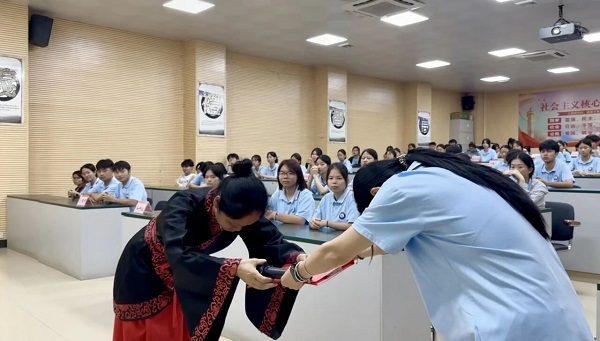 礼仪的养成:师生相遇时的微笑与问候,课堂上的尊师重道,实训中的规范操作,活动中的井然有序……文明礼仪像空气一样自然流淌在校园的每个角落。