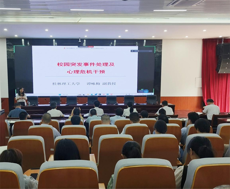 本次培训特邀桂林理工大学谭咏梅副教授担任主讲嘉宾。谭副教授凭借丰富的实践经验与深厚的专业知识,围绕 “校园突发事件处理及心理危机干预” 主题,从学校危机干预的困境、策略应对、常用技术及突发事件处理等维度展开深度讲解。
