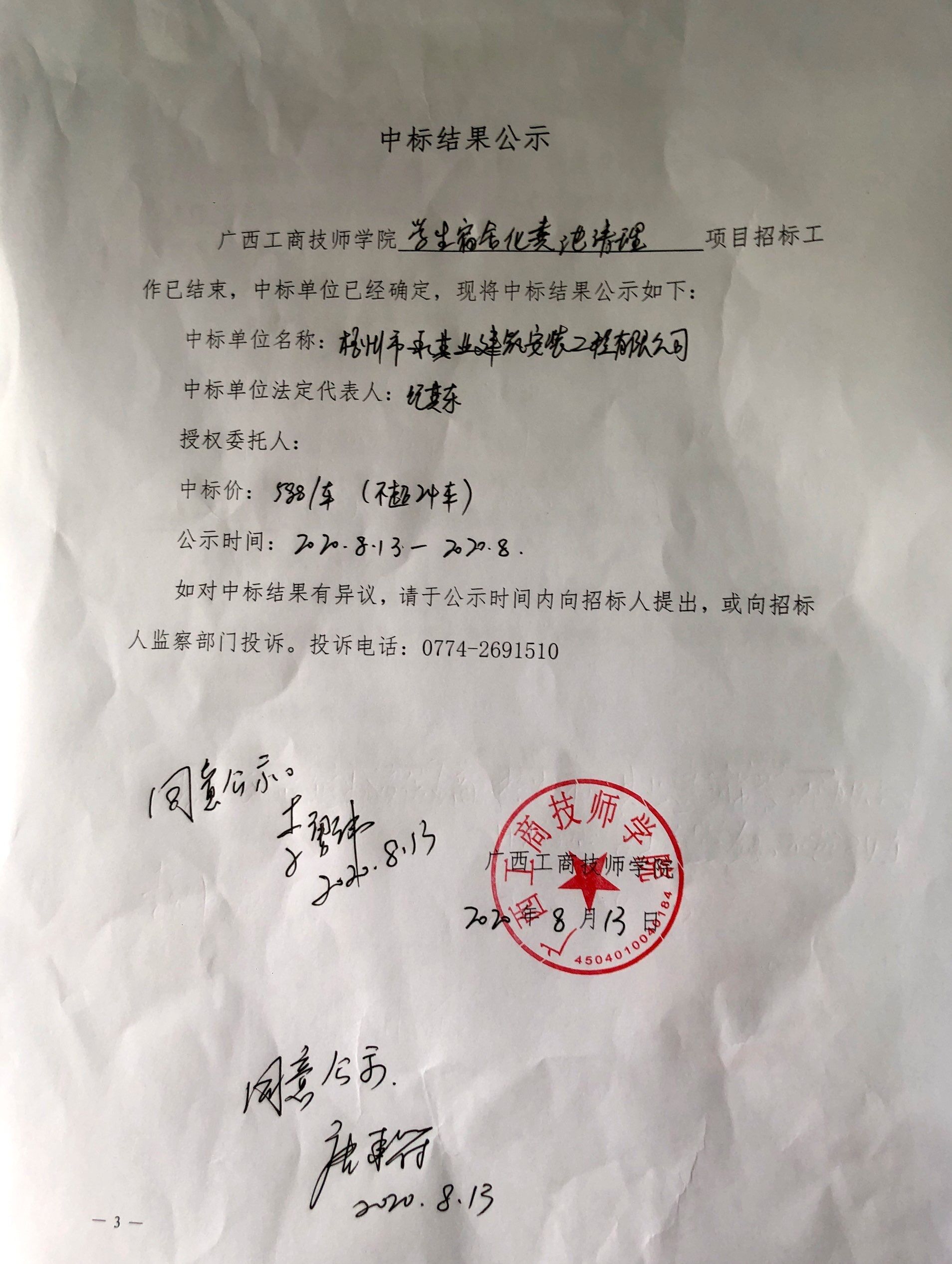 广西工商技师学院学生宿舍化粪池清理项目招标公示